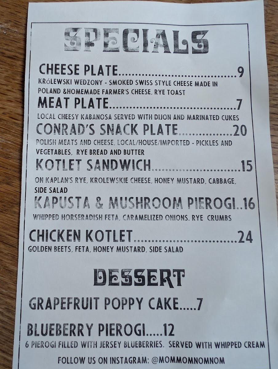 The menu also includes thoughtfully crafted desserts, from raisin pear struesel cake to unique pierogi desserts topped with mascarpone cream, offering a gentle finish to your meal. Many guests appreciate bringing home cold pierogis to-go, a convenient way to enjoy the taste of Mom-Mom’s Kitchen whenever you like.